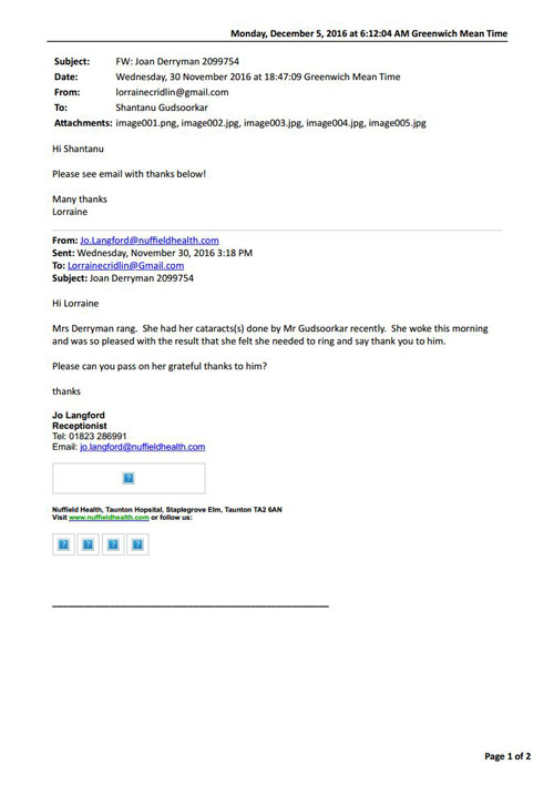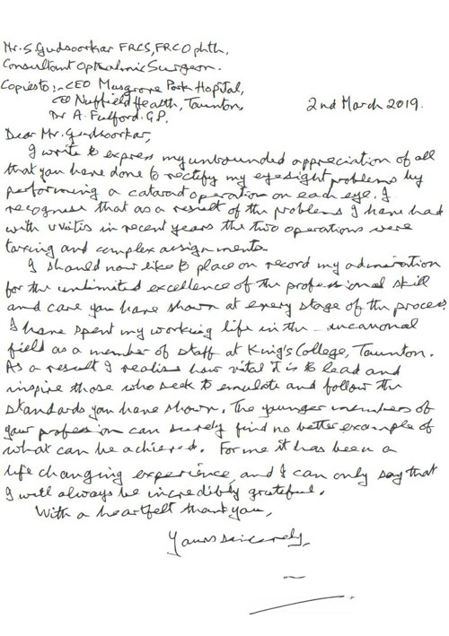 Gallery Mr. Shantanu Gudsoorkar, Consultant Ophthalmic Surgeon, Taunton, UK / Testimonials / Testimonials and Thank you Letters